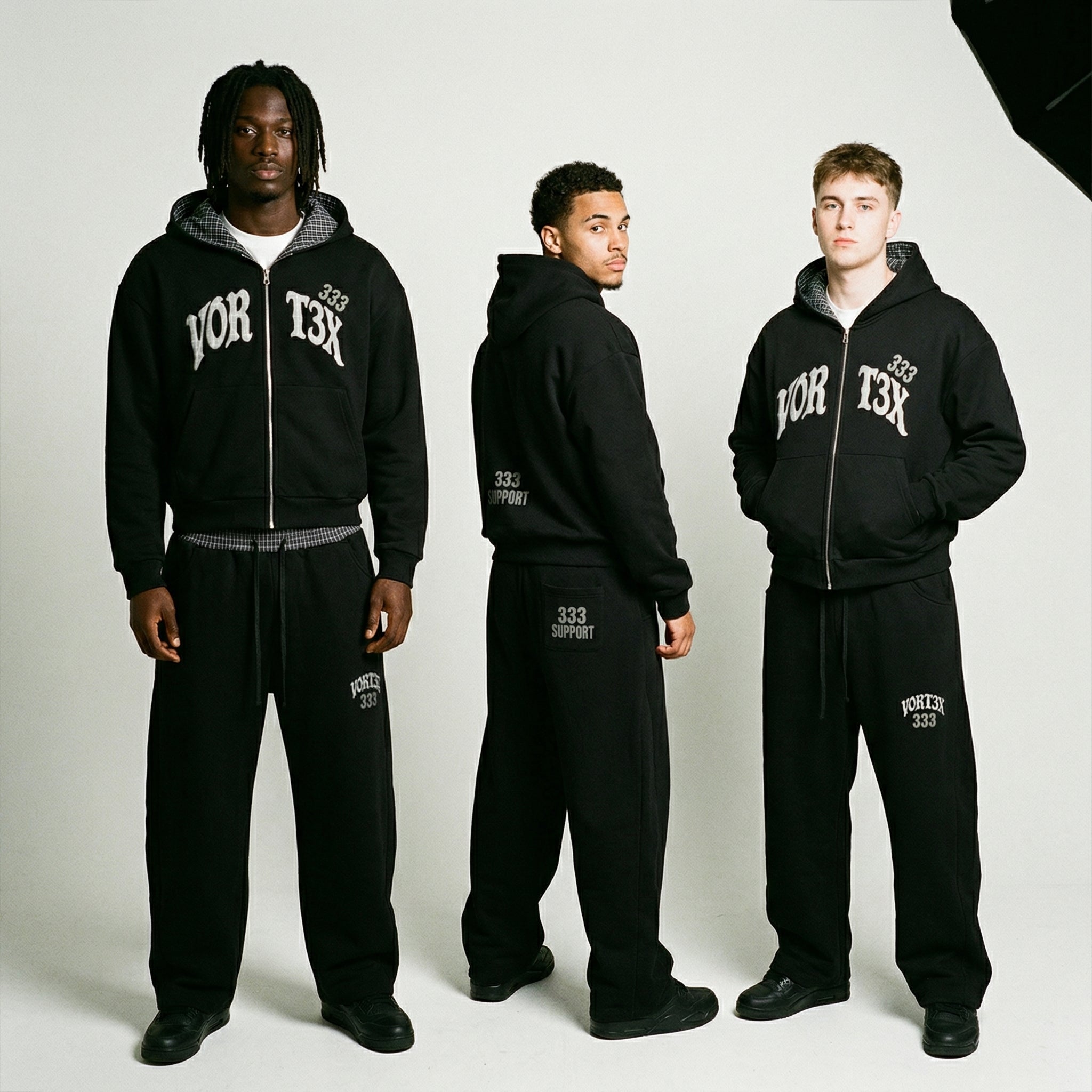 Step into our latest collection through the eyes of our creative team. Each piece tells a story—from concept to streetwear staple. Discover the vision, the craft, and the culture that define VORT3X.